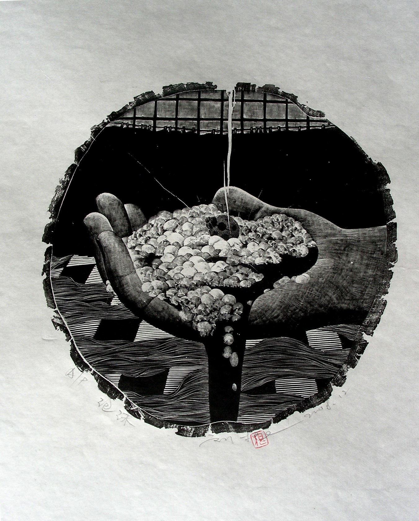 Print (5) , Black and white woodcut 21 × 21cm