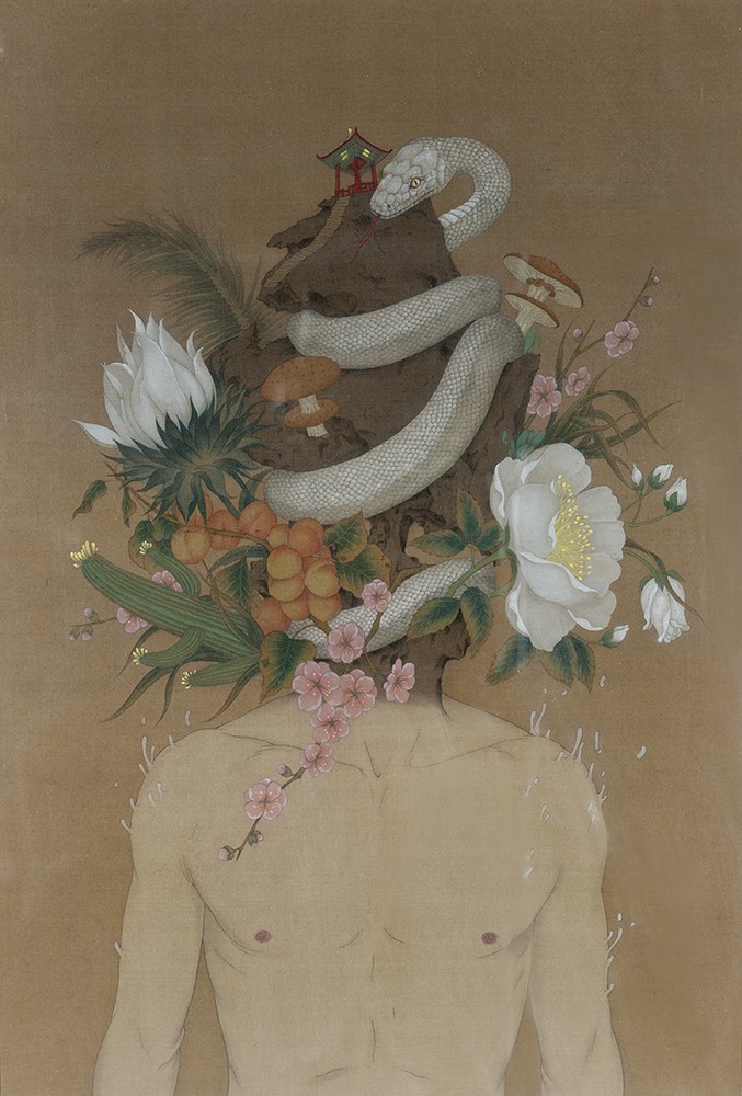 Painting on canvas (2164) , Ink and color on silk 38 × 56cm