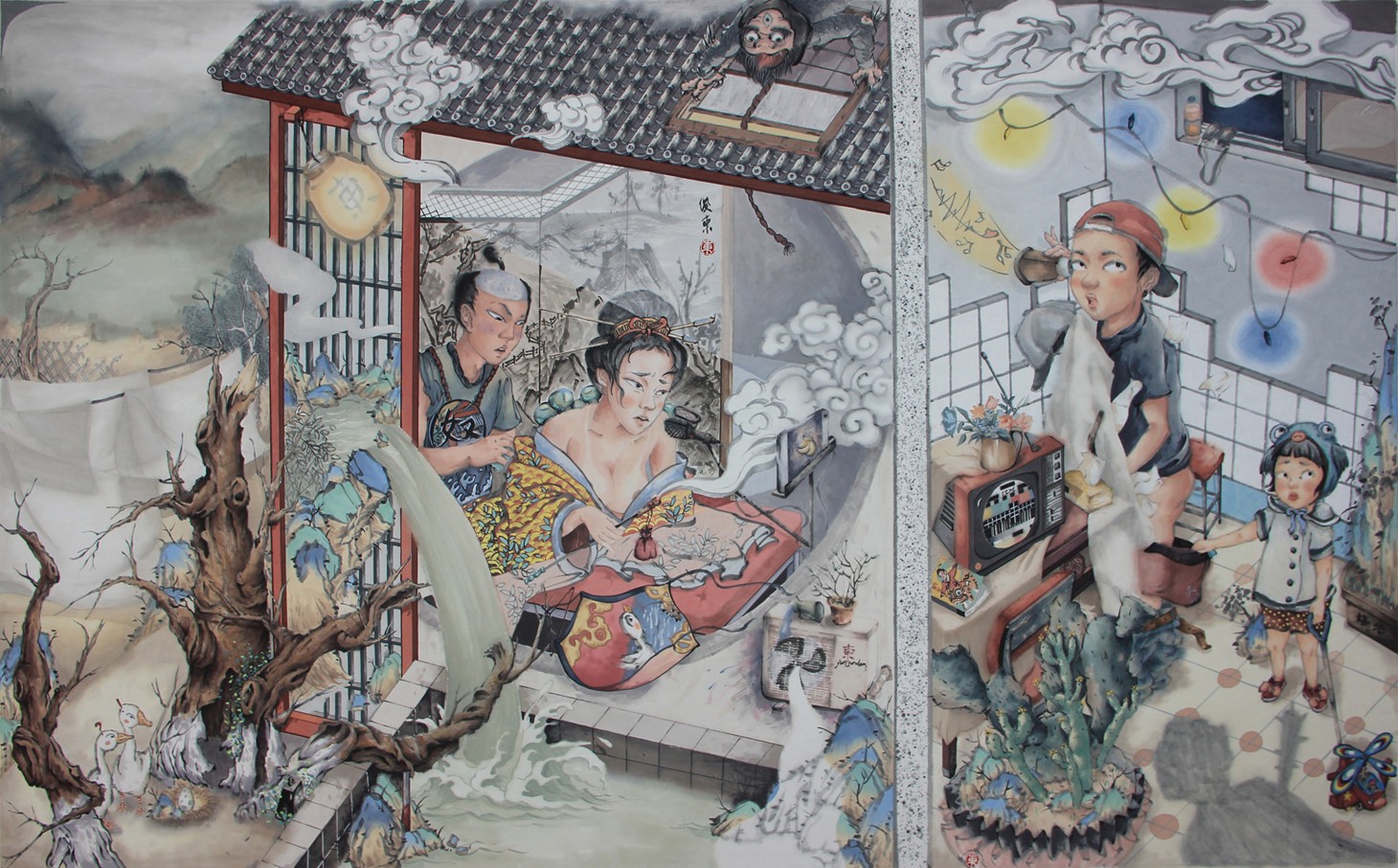 Ink painting (98) , Ink on paper 80 × 133cm