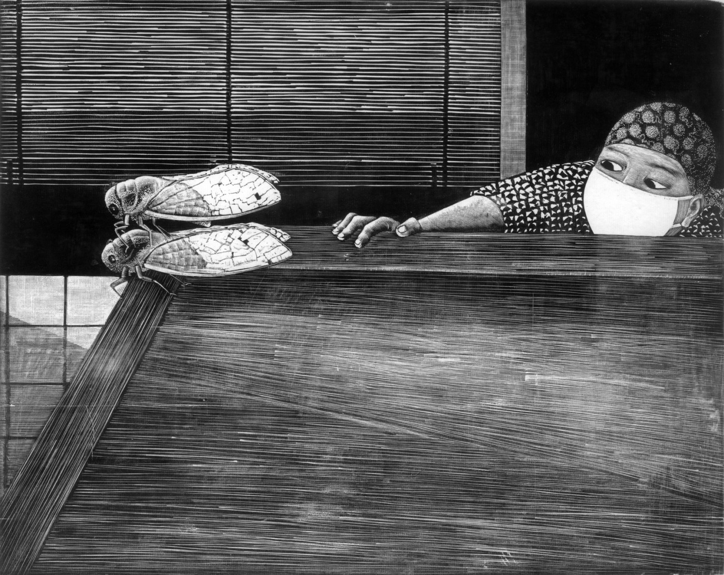 版画 (5) , 黑白木刻 33 × 27cm