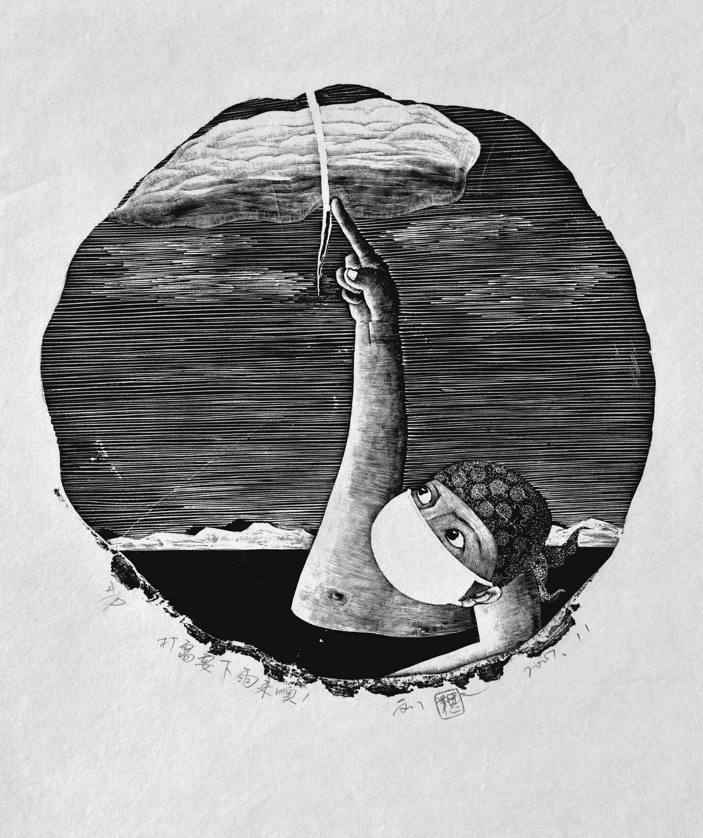 版画 (5) , 黑白木刻 21 × 21cm